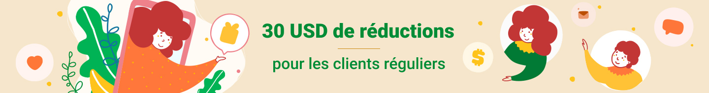 • Pour chaque nouveau client que vous parrainerez, vous recevrez un code permettant de bénéficier d’une réduction de 30 $ que vous pourrez utiliser sur notre site Web lors de votre prochaine commande. Ce code de réduction vous sera envoyé dès que la personne récemment parrainée aura passé sa première commande.